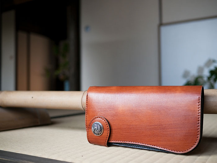 柿渋ロングウォレットの制作過程を、「